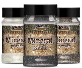 Mielone naturalne minerały do dekoracji w trzech grubościach: drobno, średnio i gruboziarniste. Sposób użycia: posypujemy klejącą się powierzchnię lub mieszamy proszek z pastą żelową np. Heavy Body Pentart i nakładamy szpachelką przez szablon itp.