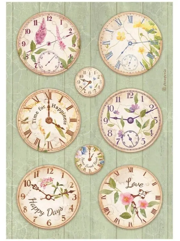 Papie ryżowy do decoupage Stamperia A4 - Welcome Home - Zegary (DFSA4743)