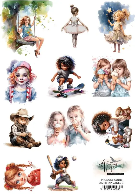 Papier Ryżowy do Decoupage Alchemy of Art A4 - Sylwetki Dziewczynek (AA-HT-RP-GIRLS-01)