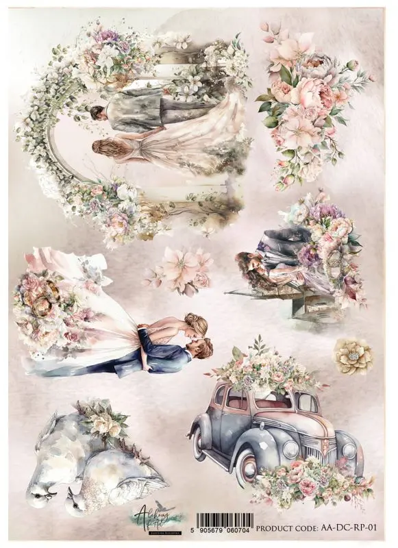 Papier Ryżowy do Decoupage Alchemy of Art A4 - Weeding/Ślub 2 ( AA-DC-RP-01)