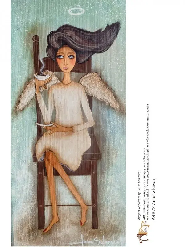 - Wymiary motywu: Anioł z kawą 25,2 × 19,6 cm
