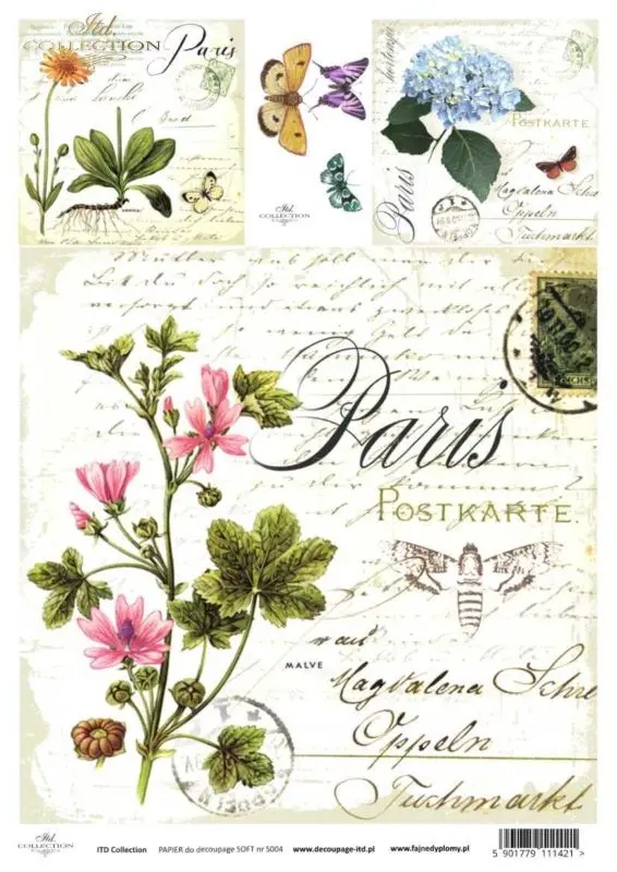 Papier ryżowy SOFT do decoupage Itd Collection - Pocztówka Paris S0004