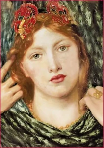 Przedstawiona kobieta jest fragmentem obrazu The Beloved znanego malarza Dante Gabriela Rossetti.
