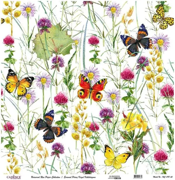Papier ryżowy do decoupage Cadence 30 × 30 cm - Kwiaty polne i motyle (UC098)