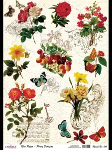 Papier ryżowy do decoupage Cadence A4 - Kwiaty i owoce (No: 041)