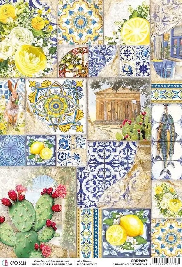 Papier ryżowy do decoupage Ciao Bella A4 - Cytryny Mozaika (CBRP097)