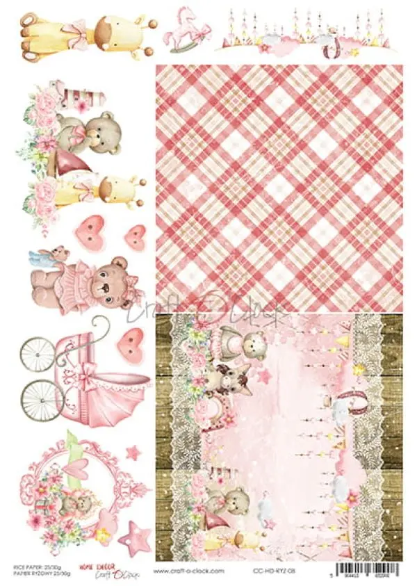 Papier ryżowy do decoupage Craft O'Clock - Słodkie misie (CC-HD-RYZ-08)