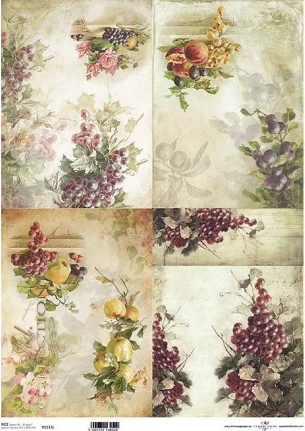 Papier ryżowy do decoupage Itd Collection A3 - Owoce 4 kompozycje (R0133L)