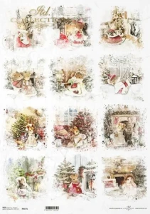 Papier ryżowy do decoupage Itd Collection A3 (R0657L) - Świąteczne myszki, myszka, myszka przy choince