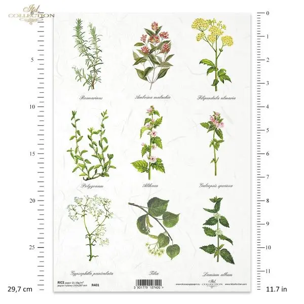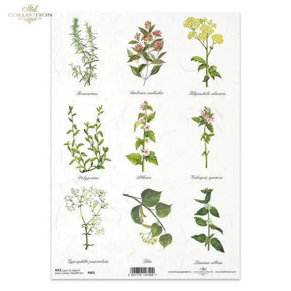 Papier ryżowy do decoupage Itd Collection A4 - Zioła, skarby łąki (R0401)