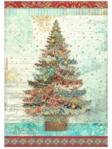 Papier ryżowy do decoupage Stamperia A4 - Christmas Greetings Choinka (DFSA4792)