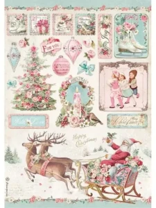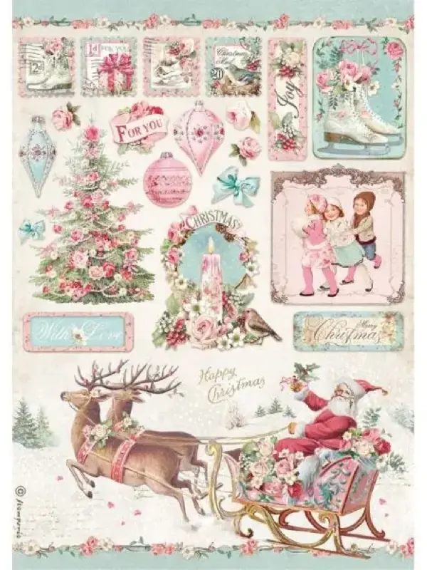 Papier ryżowy do decoupage Stamperia A4 - Pink Christmas Sanie i inne (DFSA4629)