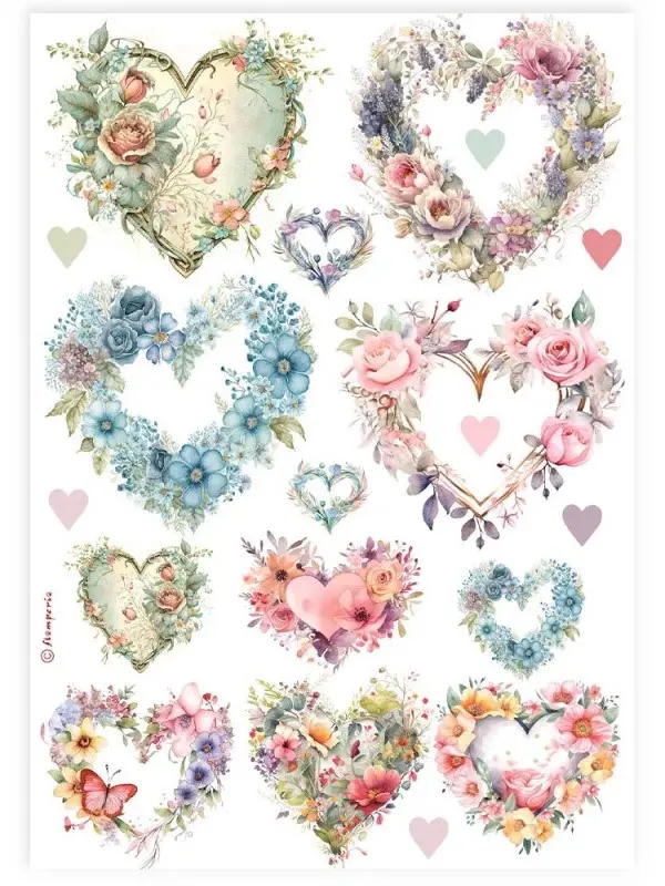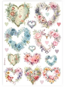 Papier ryżowy do decoupage Stamperii A4 - Ukwiecone serca