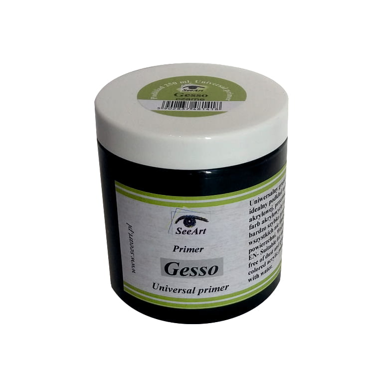 Uniwersalny grunt typu gesso to idealny podkład na bazie żywicy akrylowej , przeznaczony do farb akrylowych i olejnych .
