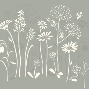 Na szablonie Meadow Flowers znajdują się delikatne motywy kwiatowe trybuli leśnej, stokrotki, lilii, koniczyny i trawy, przypominające kwiaty, które każdego lata rozjaśniają łąkę Port Meadow, niedaleko domu Annie w Oxfordzie.