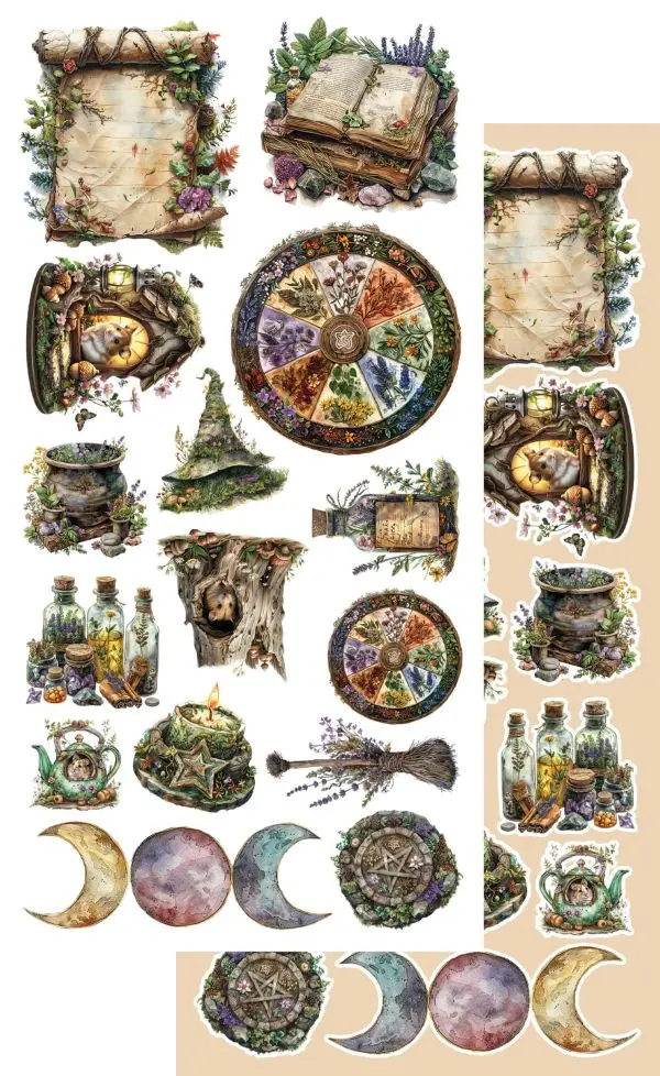 Zestaw dodatków Tales of moss and fern, w skład którego wchodzi 8 arkuszy do samodzielnego
